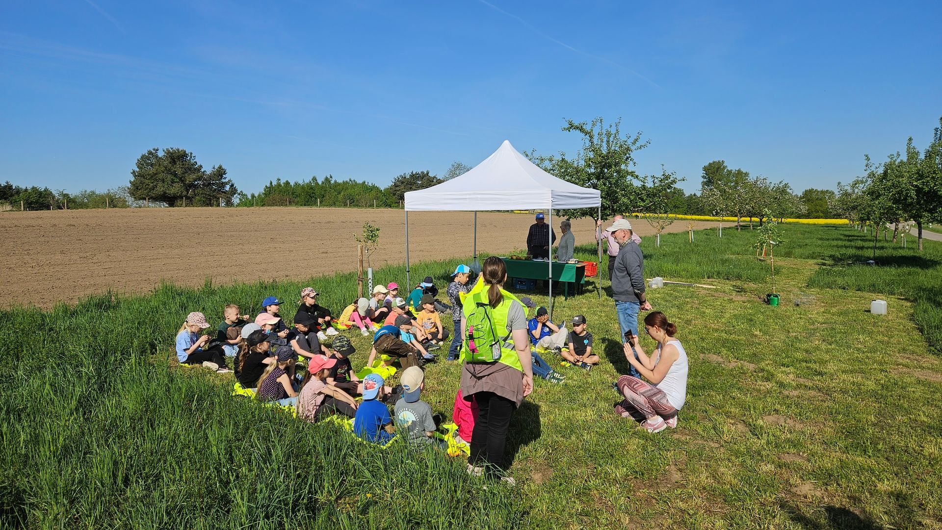Nach dem Pflanzen der Bäume waren die Nachwuchsgärtner begeistert von ihrer Arbeit und stolz darauf, Teil dieser Streuobstwiesenaktion zu sein. Sie nahmen sich vor, die neu gepflanzten Birnbäume in den kommenden Wochen und Monaten mit den Eltern zu besuchen, um ihr Anwachsen zu beobachten.
