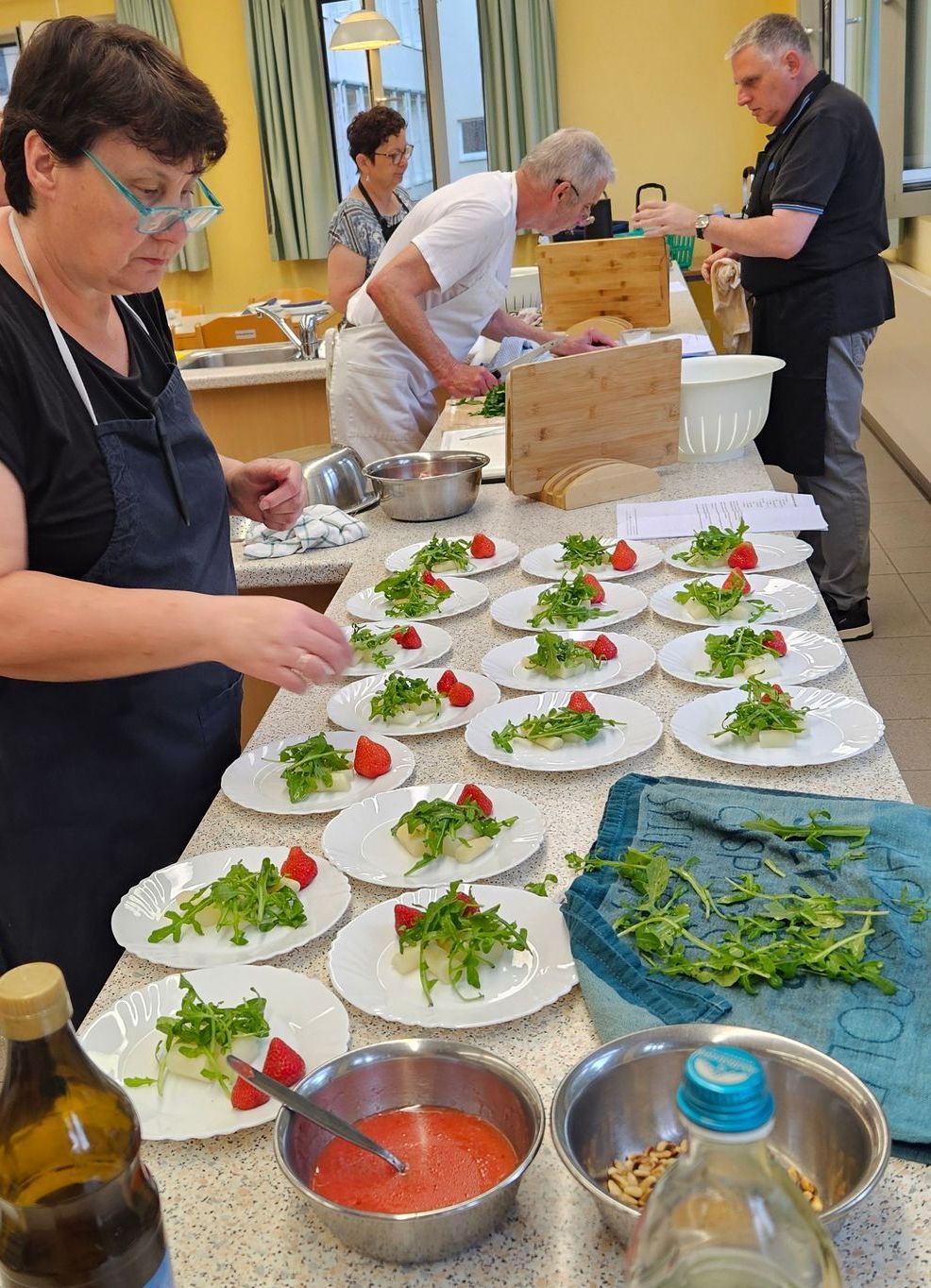 Nach rund zwei Stunden voller hilfreicher Tipps und Ratschläge der Kursleiterin verspeiste man schließlich in großer Runde und mit viel Genuss das Gekochte. Und selbstverständlich kreisten dabei die Gedanken auch schon um mögliche Themen der nächsten Kochkurse im Herbst. Denn nach der Sommerpause soll es auf jeden Fall weitergehen.