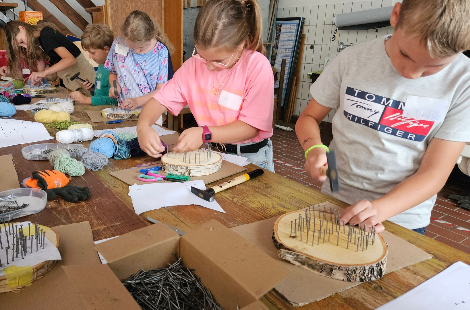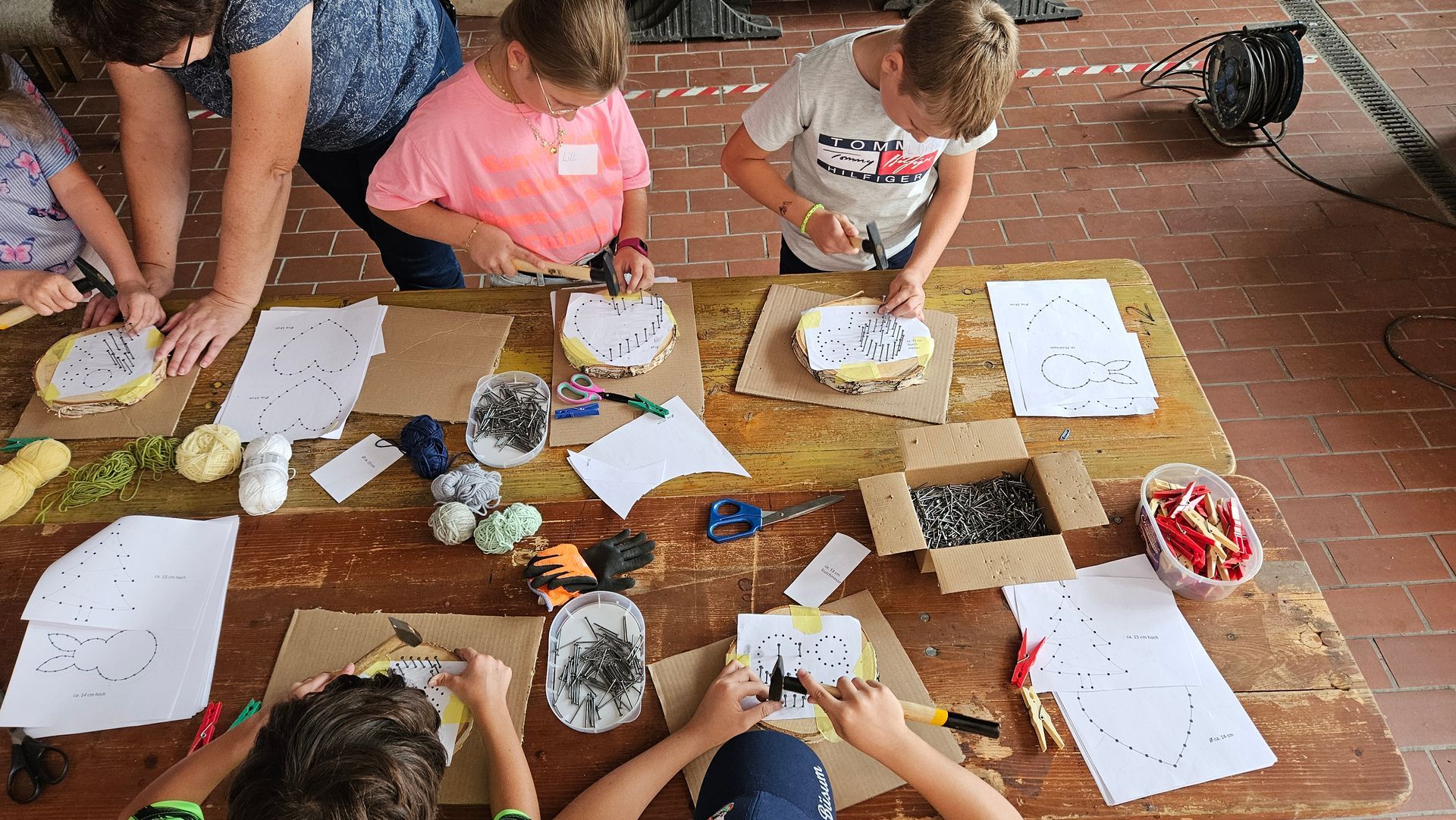 Kreativität, Fingerspitzengefühl und Augenmaß waren die Trümpfe bei der diesjährigen Ferienpass-Aktion der Rohrbacher Gartler im alten Feuerwehrhaus. 14 Kinder im Alter von 6 bis 10 Jahren waren der Einladung zum Bauen von Fadenbildern auf Holzscheiben gefolgt. Abgesagt hatte oder einfach nicht gekommen war niemand. Unter der Anleitung von etlichen Helfern wurde nach einer kurzen Einweisung zwei Stunden lang gebaut, was gefiel: Von der Blume bis zum Traktor reichten die Motive, aber auch Engel und Herzen waren sehr angesagt. Am Ende hatten alle Kinder ein oder sogar zwei Bilder für zuhause fertig und etwas tolles geschaffen.