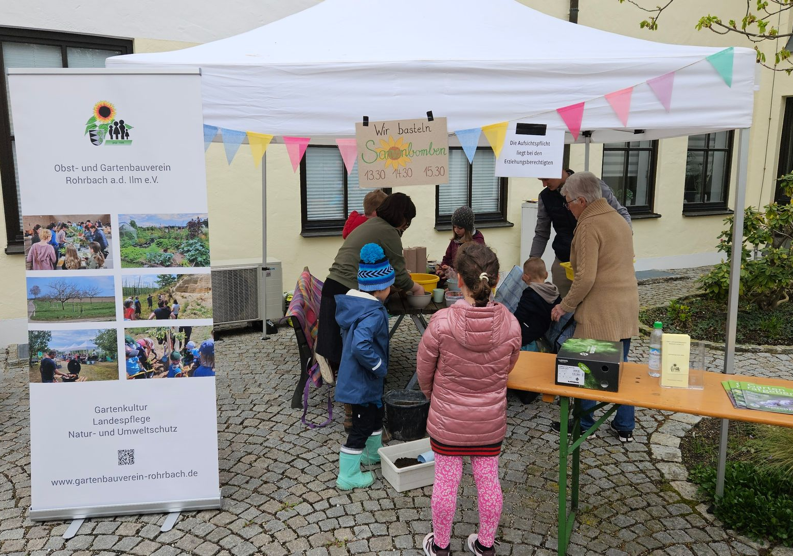 Flohmarkt der Grünen in Rohrbach - und der Gartenbauverein baut mit den Kindern Samenbomben. Zugegeben, die Idee kam von den Flohmarkt-Initiatoren, aber die Umsetzung stimmte und die Kinder hatten einen Riesenspaß.
