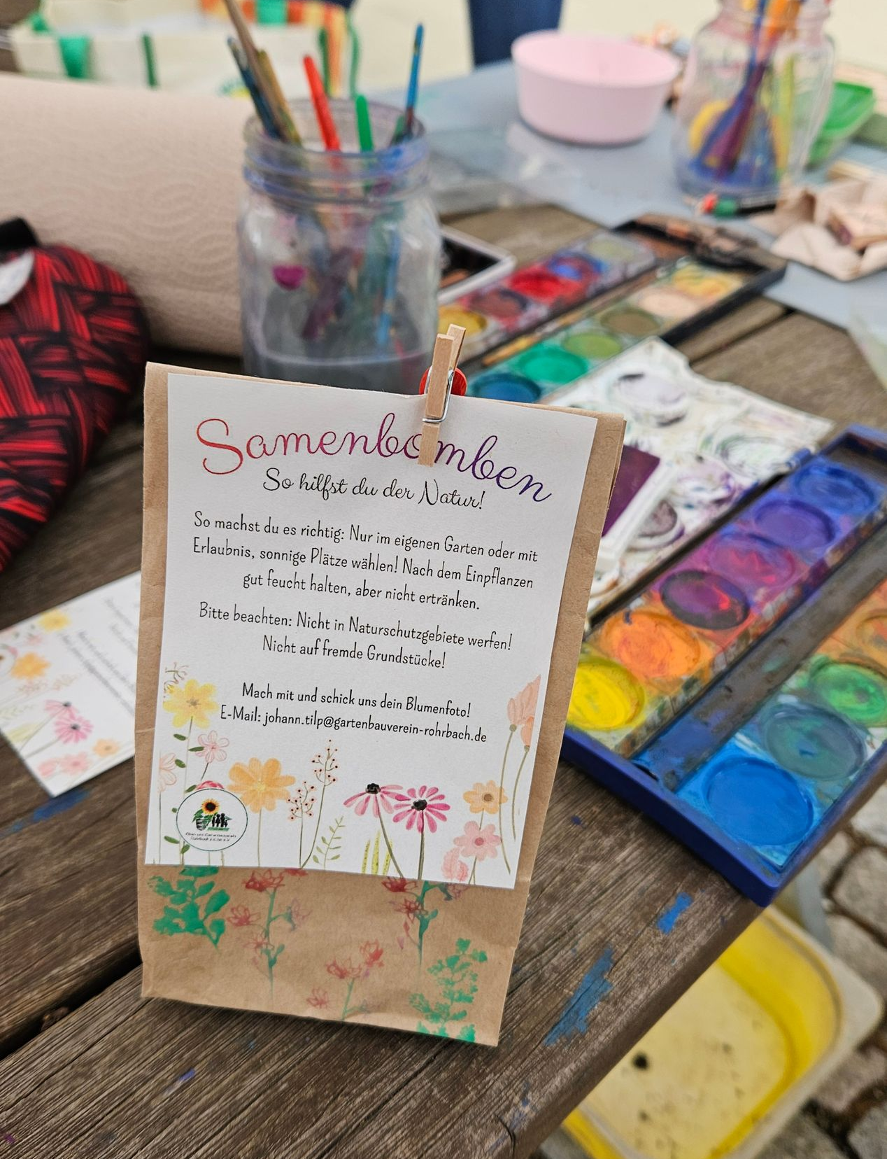 Aus Tonerde, Blumenerde, Samen und Wasser wurde Kugel um Kugel geformt. Diese kamen dann in kleine Papiertütchen, die die Kinder mit viel Kreativität bemalten und verzierten. Und schließlich wurde noch ein kleiner Beipackzettel für die richtige Aussaat angeheftet.