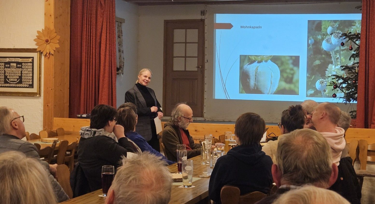 Im Anschluss begann der Vortrag „Arzneipflanzen und ihre berühmten Opfer“ von Sigrid Billig, Apothekerin und Garten-Gästeführerin des Medizinhistorischen Museums in Ingolstadt. Fachlich äußerst fundiert und ebenso unterhaltsam wurden die Zuschauer nun über die Geschichte des Museums und anschließend über zahlreiche Arzneipflanzen informiert.