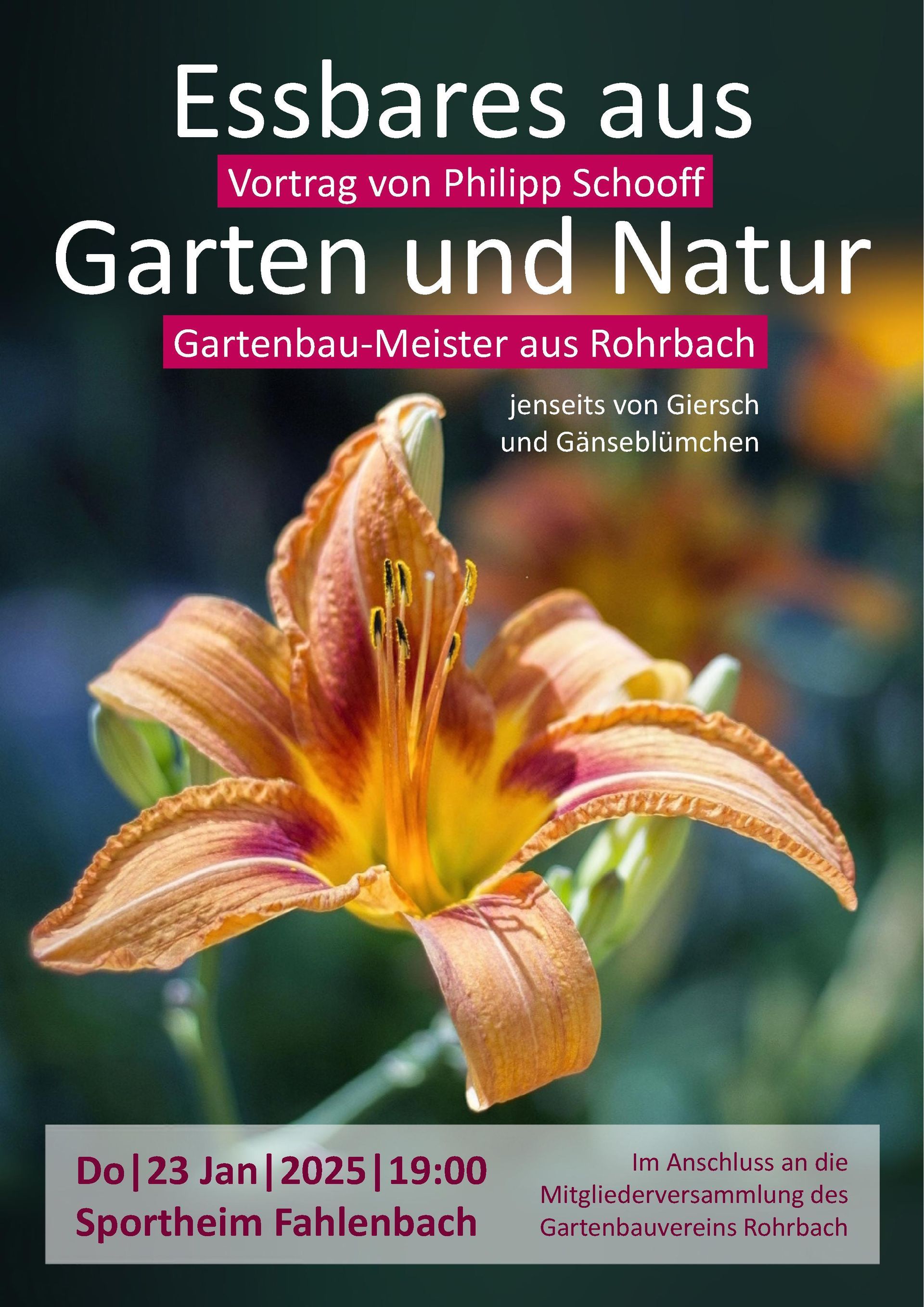 Nachdem keine Wünsche und Anträge vorlagen, schloss Hans Tilp die Versammlung und übergab das Wort an den Referenten des Abends, den Gartenbau-Meister Philipp Schooff aus Rohrbach.