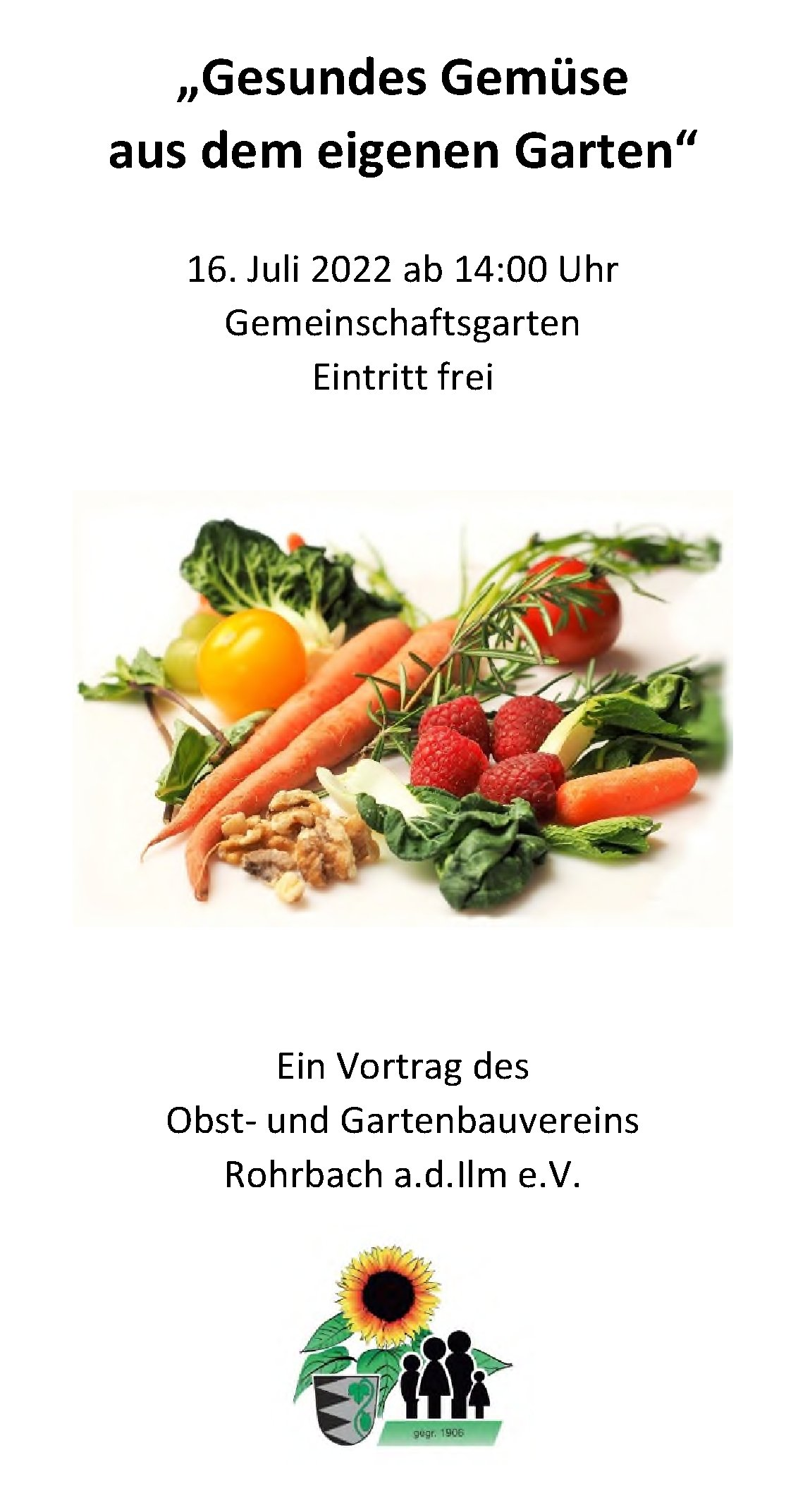 Am 16. Juli 2022 findet zum zweiten Mal ein Sommer-Vortrag im Gemeinschaftsgarten statt. Unter dem Motto „Gesundes Gemüse aus dem eigenen Garten“ zeigt Gärtnermeister Rainer Steidle aus Wasserburg am Inn am praktischen Objekt, wie Gemüseanbau geht. Eine Verkostung gehört mit zum Programm.