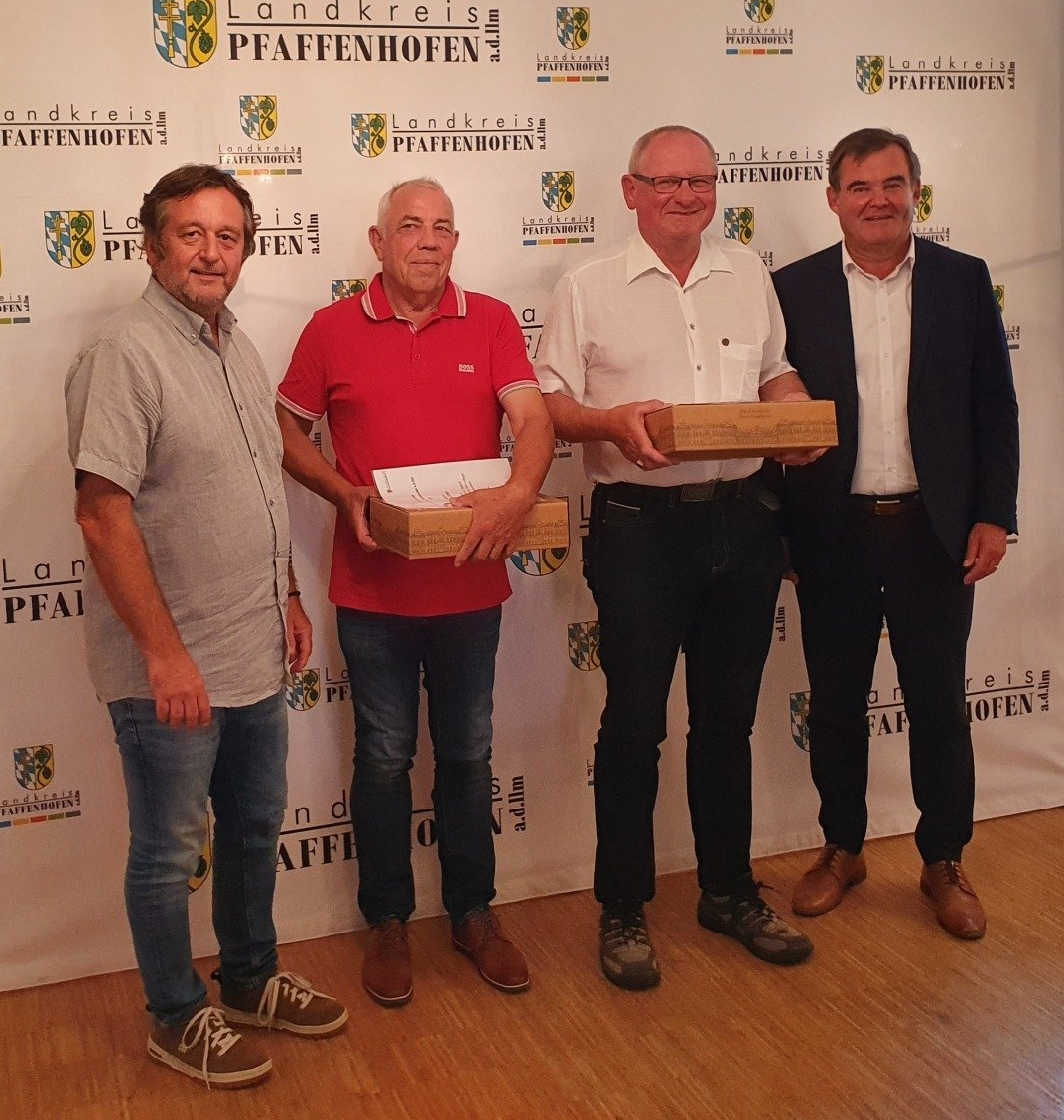 Von links: Hans Tilp (Rohrbach), Werner Weiß (Geisenfeld, Vielfaltsmacher-Projekt in der Jugend-Kategorie) und Dr. Manfred Kotzian, Geschäftsführer des Bezirksverbandes Oberbayern bei der Preisverleihung am 04.04.2022 in Puch.